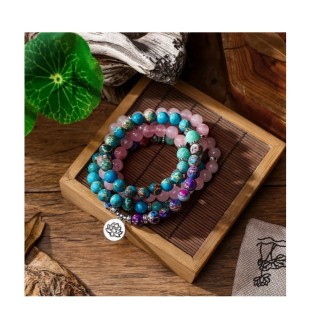 108 Mala Perlen mit Jaspis Rosenquarz Lotusblume Malakette