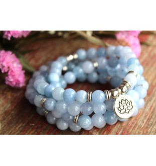 Bracelet Mala Aquamarine 8 mm Vision Lotus Flower Protection Aquamarine Mala